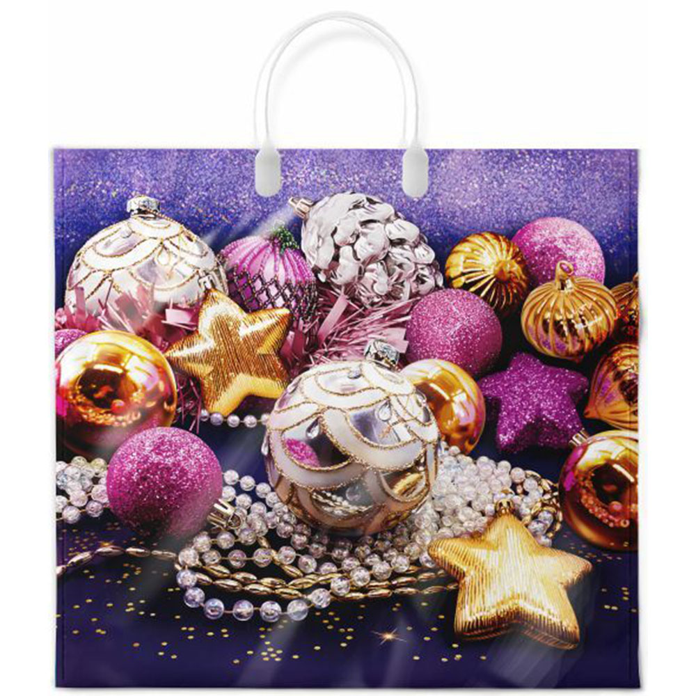 Пакет Новогодний ПЭ " Интерпак " с пластиковой ручкой ПВД, 37*34см 80мкм Самоцветы