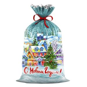 Пакет Новогодний ПП " Интерпак " без ручек, 25*40см 91мкм Деревушка, фольгированный