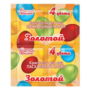 Набор пасхальных красителей " Золотой " 4 цвета: золотой желтый, золотой красный, золотой синий, золотой зеленый, бумажный пакет