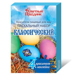 Набор пасхальных красителей с наклейками, 4 цвета: желтый, красный, синий, зеленый " Классический " , картонная упаковка