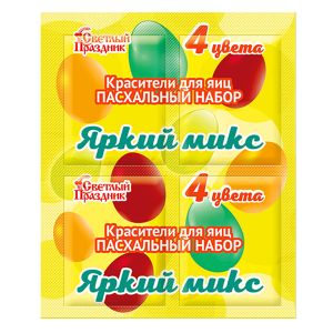 Набор пасхальных красителей " Яркий Микс " 4 цвета: желтый, синий, красный, зеленый , бумажный пакет