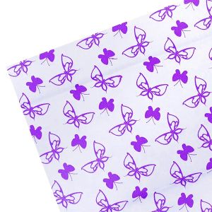 Бумага тишью c орнаментом "deVENTE. Фиолетовые бабочки на белом фоне" 50x70 см, 17 г/м², 5 л, пластиковый пакет с европодвесом.