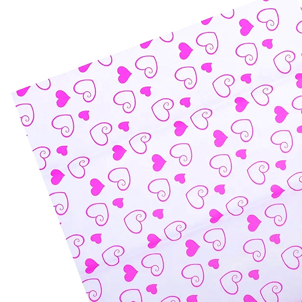 Бумага тишью c орнаментом "deVENTE. Розовые сердца на белом фоне" 50x70 см, 17 г/м², 5 л, пластиковый пакет с европодвесом.
