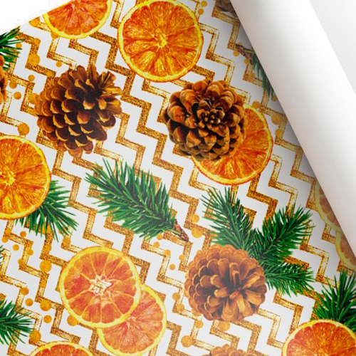 Упаковочная бумага Новогодняя " Интерпак " 68,5см*100см 1 лист Хвоинки, в рулоне, 90г/м2