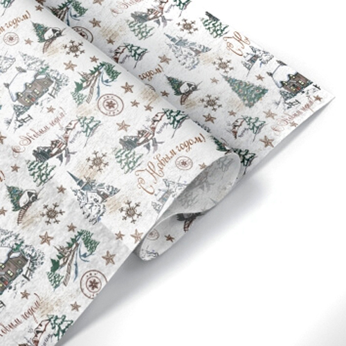 Упаковочная бумага Новогодняя тишью " Интерпак " 70см*40м в рулоне, Во дворе, 18г/м2