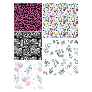 Упаковочная бумага в пяти дизайнах поможет стильно оформить любой подарок: игрушки, одежду, посуду, технику и гаджеты. Отличная бумага для упаковки порадует виновника торжества: она сделает сюрприз ярче, красивее и добавит долю таинственности. Бумага выполнена из качественного и безопасного сырья.