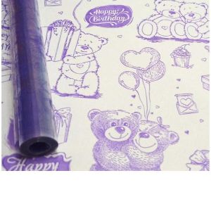 Упаковочная пленка " Миленд " 70см*7,5м Мишки, фиолетовая, в рулоне, 40мкм, прозрачная