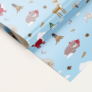 Упаковочная бумага Новогодняя " Миленд " 70*100см 10 листов, Зимний лес, в рулоне, пантон золото, 90г/м2
