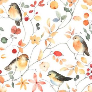 Упаковочная бумага " Миленд " 70*100см 10 листов, Птички на ветке, в рулоне, 90г/м2