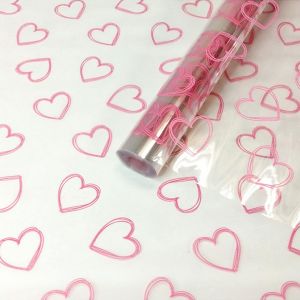 Упаковочная пленка " Миленд " 70см*7,5м Сердечки контурные, розовые, в рулоне, 40мкм, прозрачная