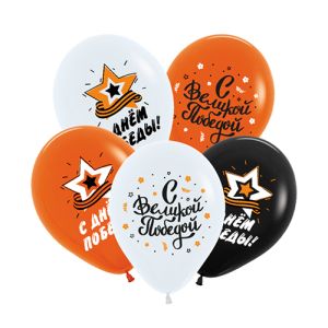 Шар латексный с рисунком " Браво " 12"/30см 9 Мая, Великая победа! ассорти из 3 цветов, 2 дизайна