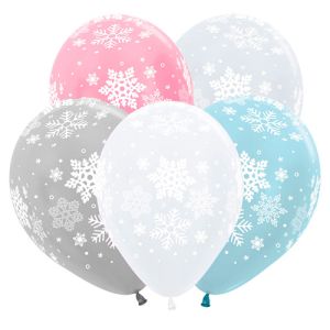 Нежные снежинки на перламутровых шарах. Идеально подойдут как для Нового года, так и для детского праздника в стиле "Холодное сердце". Также может использоваться в композициях, в качестве самостоятельного подарка ребенку или в составе фонтана из шаров.