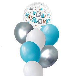 Набор шаров " Браво " Ура, мальчик 7в1, состав: 18"/46см фольгированный шар круг - 1шт, 14"/35см латексные шары хром - 2шт, 12"/30см латексные шары пастель - 4шт