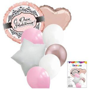 Набор шаров " Браво " С Днем Рождения для нее 8в1, состав: фольгированные шары: 18"/46см круг - 1шт, 18"/46см звезда - 1шт, 18"/46см сердце - 1шт, латексные шары - 5шт 3 дизайна