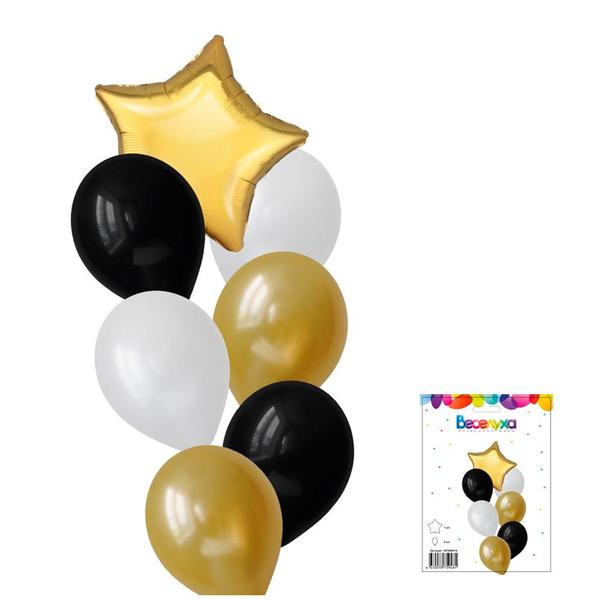 Набор шаров " Браво " Классика 7в1, состав: 18"/46см фольгированный шар звезда - 1шт, 12"/30см латексные шары - 6шт 3 цвета
