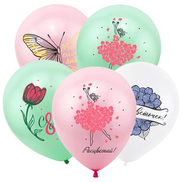Шар латексный " Браво " пастель 12"/30см С 8 марта! Цветы ассорти
