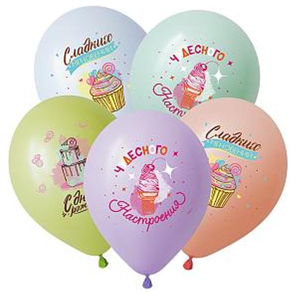 Шар латексный с рисунком " Браво " пастель 12"/30см Сладкий День Рождения, ассорти 5 цветов, 3 дизайна