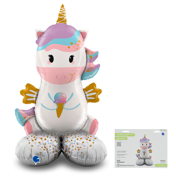 Шар фольгированный фигурный " Браво " 61"/154см Единорог на подставке