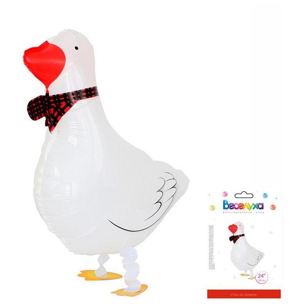 Шар фольгированный фигурный " Браво " 24"/60см Гусь на ножках