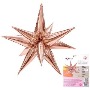 Шар фольгированный фигурный " Браво " 26"/66см Звезда составная Розовое золото