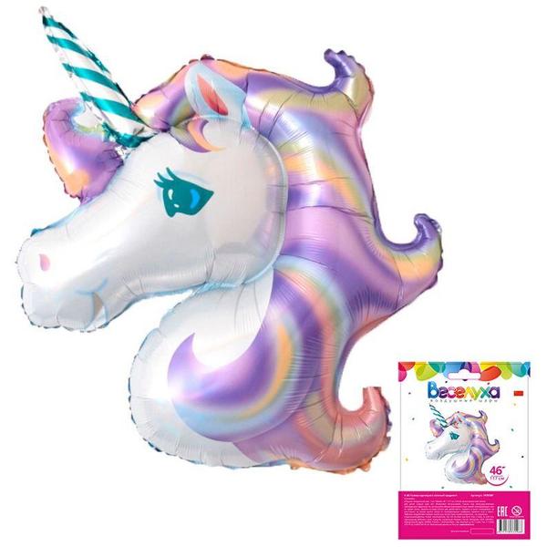 Шар фольгированный фигурный " Браво " 46"/117см Единорог нежный голова