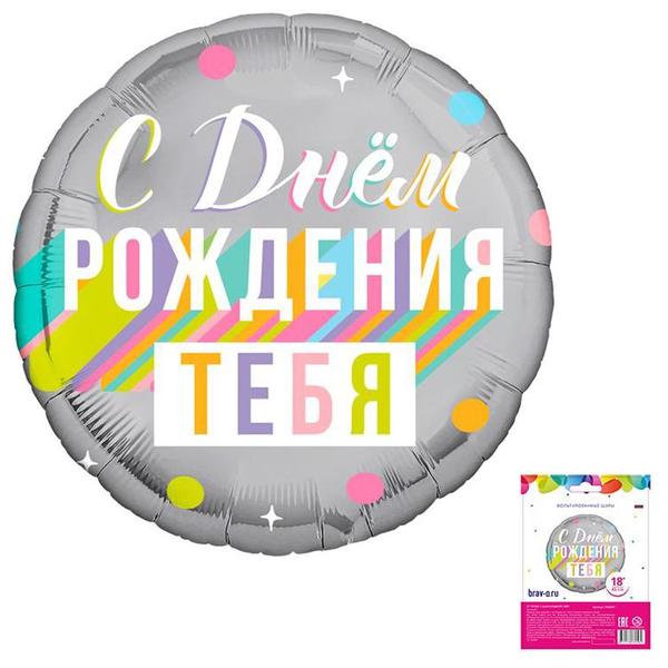 Шар фольгированный " Браво " 18"/46см Круг С Днем рождения тебя!
