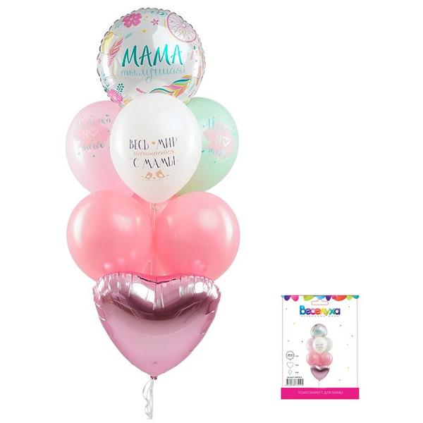 Набор шаров " Браво " Комплимент для мамы 8в1, состав: фольгированные шары: 18"/46см круг - 1шт, 19"/48см сердце - 1шт, латексные шары - 6шт 3 дизайна