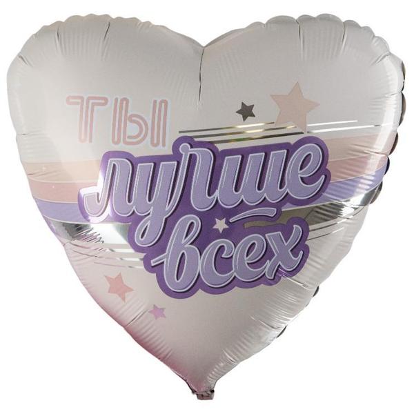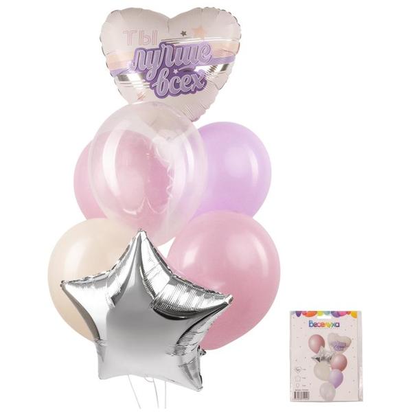 Набор шаров " Браво " Ты лучше всех 7в1, состав: 19"/48см фольгированный шар сердце - 1шт, 18"/46см фольгированный шар звезда - 1шт, 12"/30см латексные шары - 5шт 5 цветов