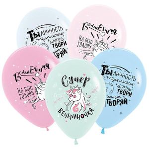 Шар латексный с рисунком " Браво " пастель 12"/30см Единорог на драйве, ассорти из 5 цветов, 3 дизайна