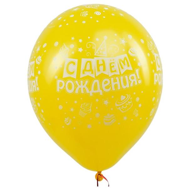 Шар латексный с рисунком " Браво " пастель 12"/30см С Днем рождения, ассорти из 5 цветов, 3 дизайна