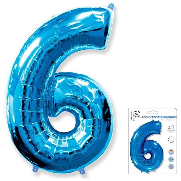 Шар фольгированный " Браво " 40"/102см Цифра-6 синий, в упаковке