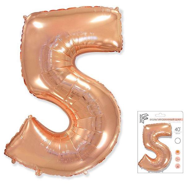 Шар фольгированный " Браво " 40"/102см Цифра-5 розовое золото, в упаковке