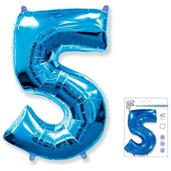 Шар фольгированный " Браво " 40"/102см Цифра-5 синий, в упаковке
