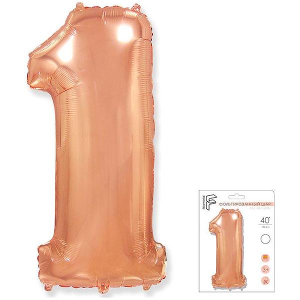 Шар фольгированный " Браво " 40"/102см Цифра-1 розовое золото, в упаковке