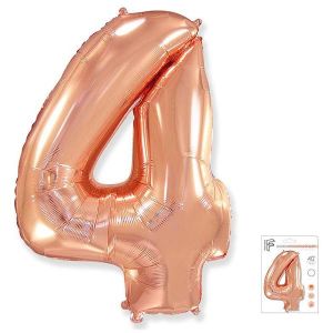 Шар фольгированный " Браво " 40"/102см Цифра-4 розовое золото, в упаковке