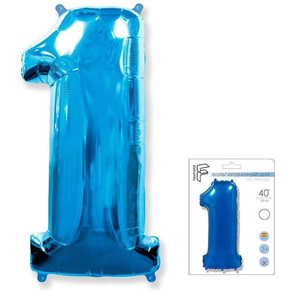 Шар фольгированный " Браво " 40"/102см Цифра-1 синий, в упаковке