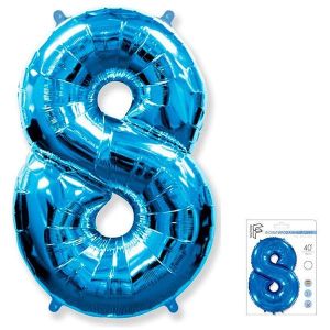 Шар фольгированный " Браво " 40"/102см Цифра-8 синий, в упаковке