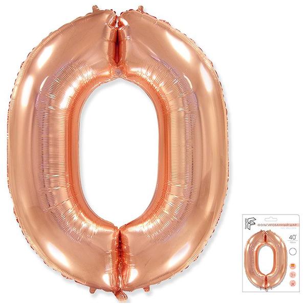 Шар фольгированный " Браво " 40"/102см Цифра-0 розовое золото, в упаковке