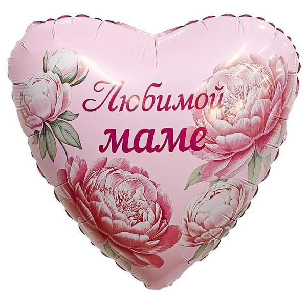 Шар фольгированный " Браво " 19"/48см Сердце Любимой маме, пионы