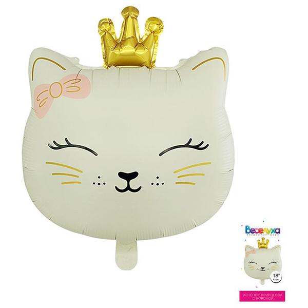 Шар фольгированный фигурный " Браво " 18"/46см Котенок принцесса с короной, пудровый, в упаковке