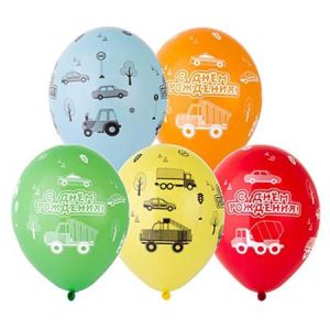Набор шаров латексных 14" 36см С Днем рождения! Машинки, 5 цветов, 3 дизайна, комплект 5шт