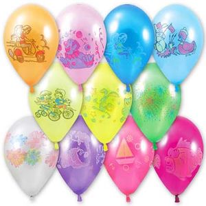 Шар латексный с рисунком 12"/30см, ассорти из 10-12 цветов, 6-8 дизайнов