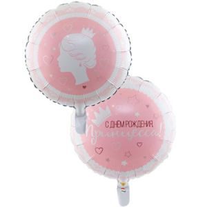 Шар фольгированный 18"/46см Круг С Днем рождения, Принцесса