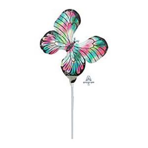 Шар фольгированный фигурный 12"/30см Бабочка яркая, переливы, крепится с помощью розетки на палочку