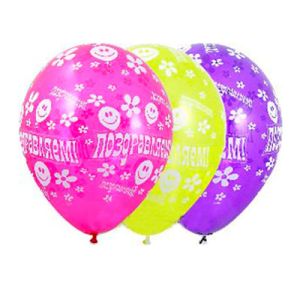 Шар латексный шелкография 14"/36см Поздравляем! Кристалл, ассорти из 6-8 цветов, 1 дизайн