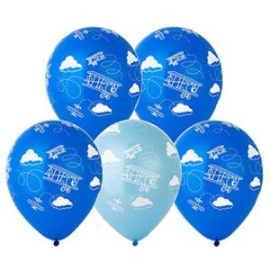 Шар латексный шелкография 12"/30см Самолетики ассорти из 2 цветов