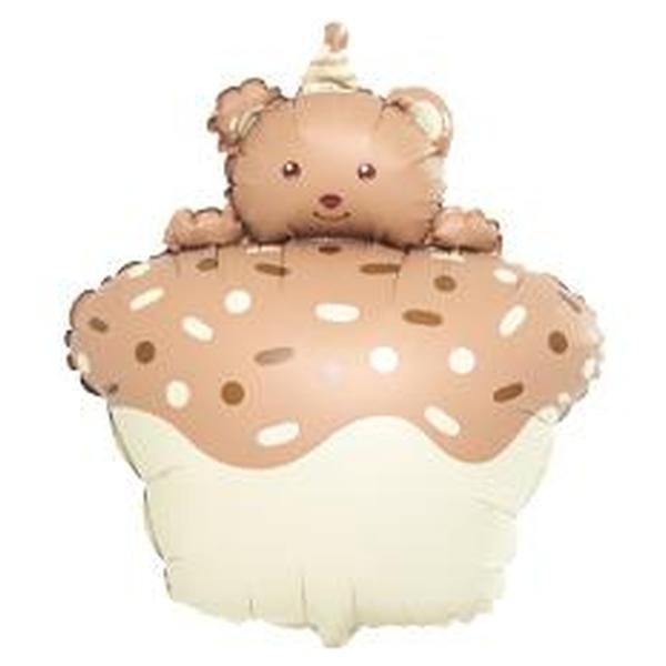 Шар фольгированный фигурный 28"/71 см Кексик с мишкой бежевый