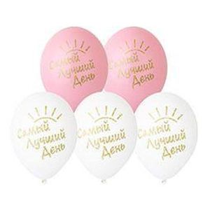 Набор шаров латексных 14" 36см Самый лучший день, 2 цвета, 1 дизайн, комплект 5шт