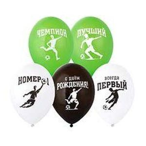 Шар латексный с рисунком 14"/36см С др Чемпион Футбол ассорти из 3 цветов, 5 дизайнов