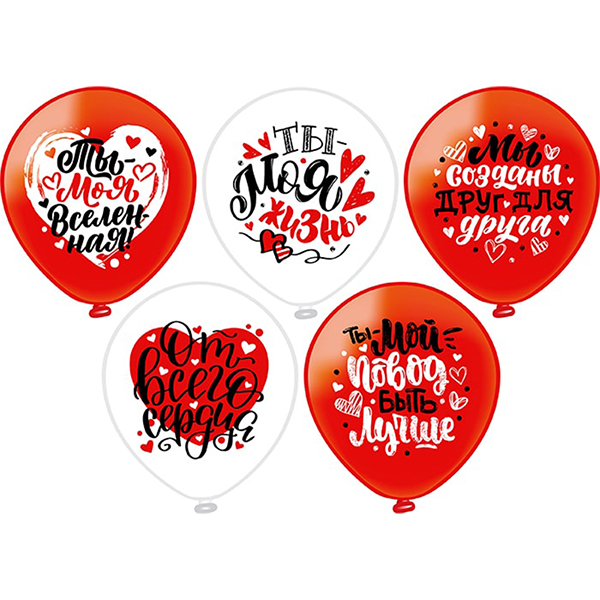 Латексные шары с рисунком в виде романтических признаний и сердечек. Эти шары помогут создать романтическую атмосферу в любой день, ну и конечно прекрасно подойдут к празднику 14 февраля. Шарики подходят как для надува воздухом при помощи ручного насоса или компрессора, так и для заполнения гелием. Воздушные шары изготавливаются из экологически безопасного 100%-ного натурального латекса.